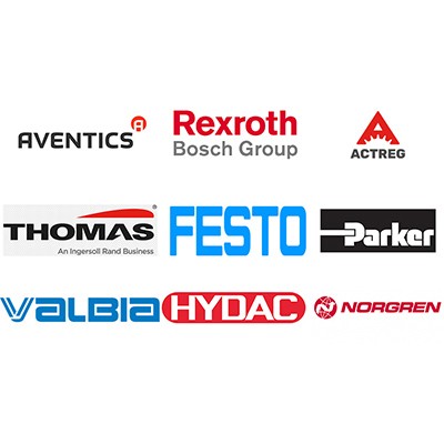 ACTREG、AirTac、ASCO、AVENTICS、CAMOZZI、CKD、FESTO、HAINZL、HAM-LET、HKC、HOKE、HYDAC、LUER、NORGREN、PARKER、REXROTH、ROQUETROQUET、SCHMALZ、SMC、Swagelok、THOMAS、TOYOOKI、VALBIA、VALVOLE、VOSS、W.C. Branham